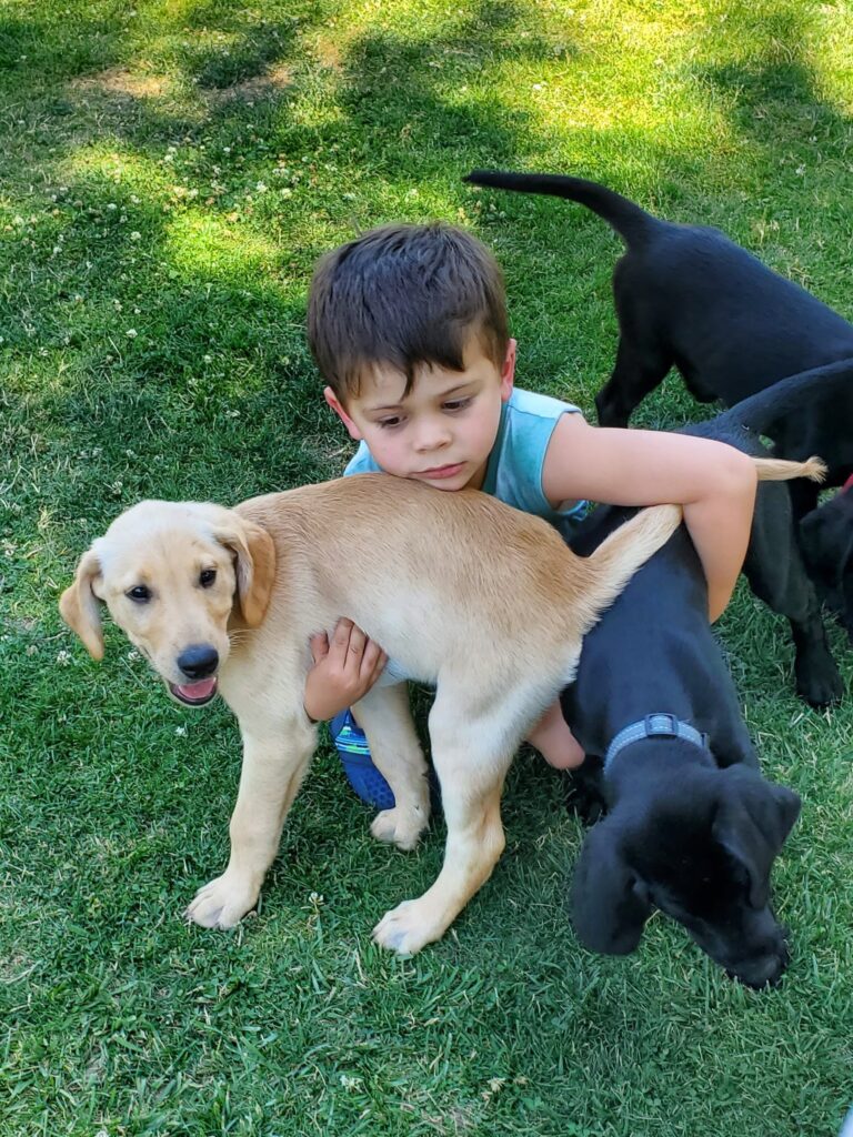 Our Labradors are great with kids and other pets. Their playful demeanor and patience make them wonderful companions for the whole family.